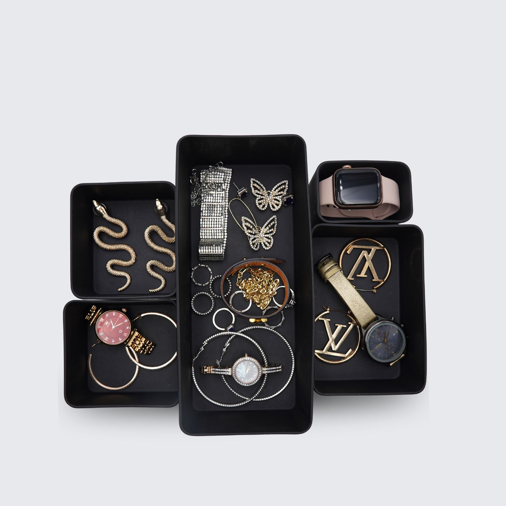 Different sized slots and deep drawers make it easy to fit all your items and see them at a glance. Everyone has their own stuff to unclutter.